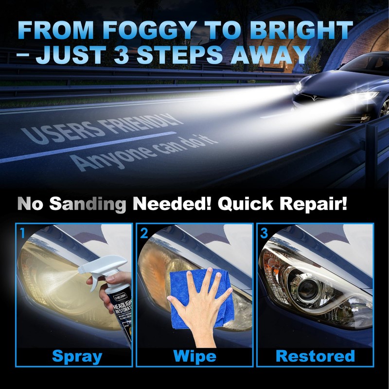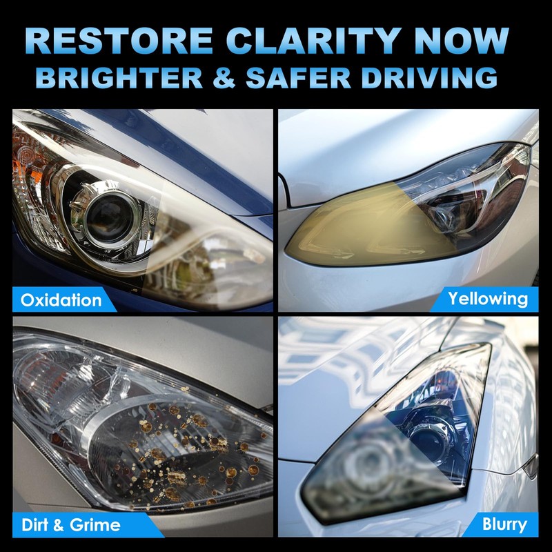 - Quick & Effective Headlight Restoration: Restore clarity in minutes! This headlight restorer spray quickly eliminates yellowing, cloudiness, and oxidation—instantly reviving dull, foggy headlights for enhanced visibility and safer driving.