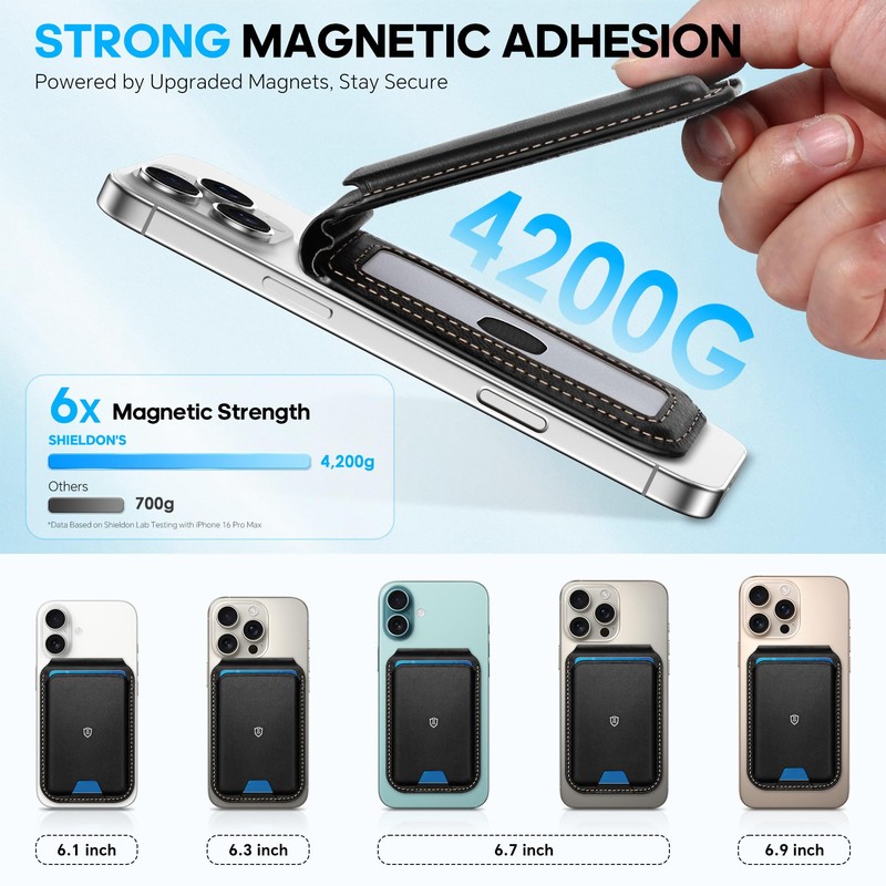 - Compatibility - The card holder wallet compatible with iPhone 16 Pro Max/16 Pro/16 Plus/16, iPhone 15 Pro Max/15 Pro/15 Plus/15, iPhone 14 Pro Max/14 Plus/14 Pro/14, iPhone 13 Pro Max/13 Pro/13, iPhone 12 Pro Max/12 Pro/12 (without Mini), fits perfectly with MagSafe Cases and magnetic cases. Not suitable for non-magnetic cases. Stronger adhesion when used with official magnetic case or SHIELDON wireless charging cases