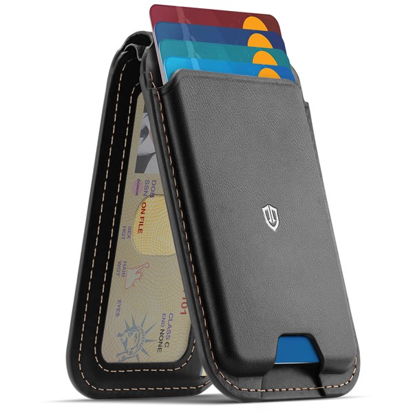 SHIELDON For MagSafe Wallet, Genuine Leather Adjustable Card Holder [Magnetic Stand] [RFID Blocker] [Slim] [ID Window] [Strong Adhesion] Magnetic Wallet, Retro black/black, Foldable