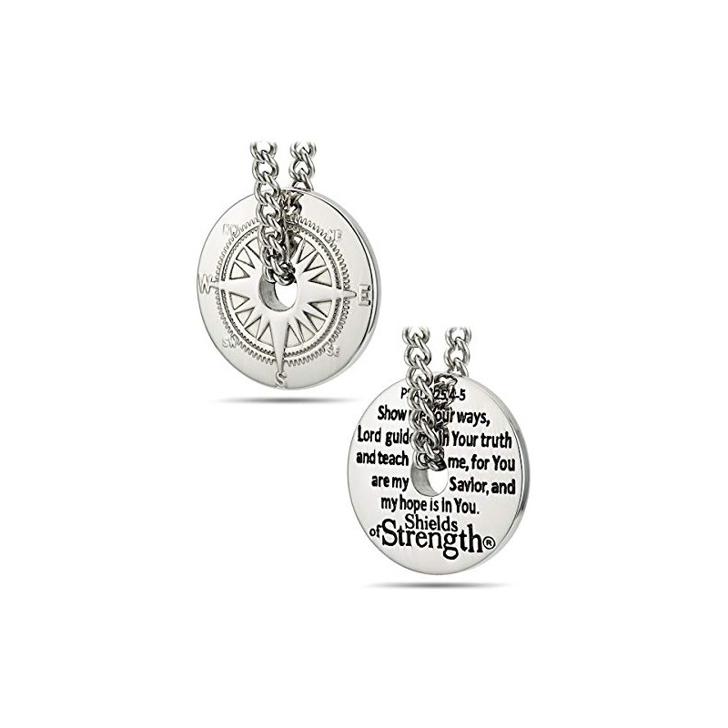 - DESIGN - The men’s stainless steel compass necklace features a beautiful and detailed raised compass design. This is an excellent gift for men who enjoy spending time in the great outdoors. Engraved on the back of the necklace is the full text of Psalm 25:4-5 reading, "Show me Your ways Lord, guide me in Your truth and teach me, for You are my Savior, and my hope is in You."