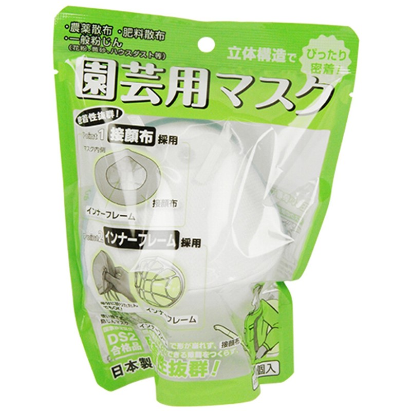 [Uses]- For use when spreading agricultural chemicals (powder), and for ordinary fine particles.[Features]- It has an inner frame which holds its shape well, and it can be folded.- The 3D construction maintains space around the mouth and makes it easy to talk.- You can fit it to your face just right with the adjustable straps.- The hook-type straps make it easy to put on.[Specifications]- Dimensions: W 5.6 x H 7.5 x D 2.8 inches (W 14.2 x H 19 x D 7.2 cm)- For spreading agricultural chemicals, spreading fertilizer, ordinary fine particles (pollen, sand, house dust, etc.)- Contains 1 Mask