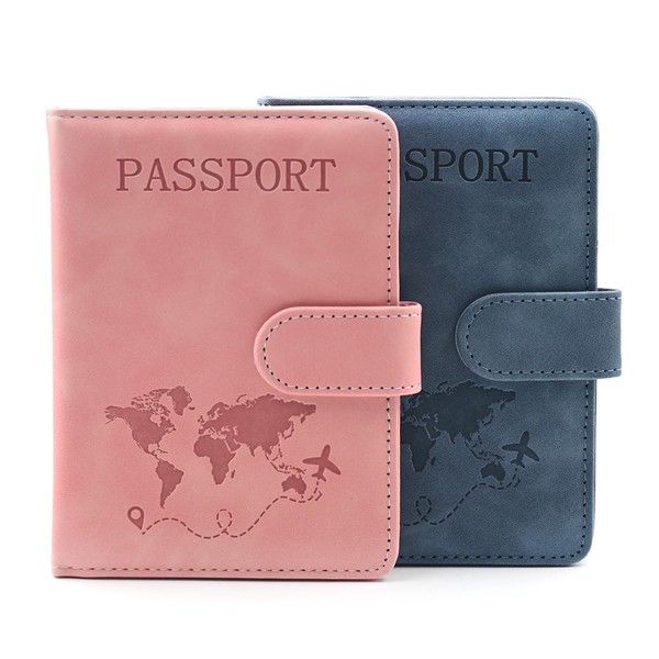 ShigKeu 2 Pcs PU Leather Passport Holder Cover Wallet Case
