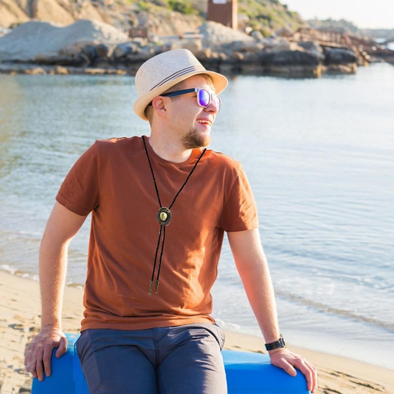 ShigKeu Men Bolo Tie Western Cowboy Ties Adjustable Leather Necklace Cowboy Necklaces Handmade for Women Kids Boys
