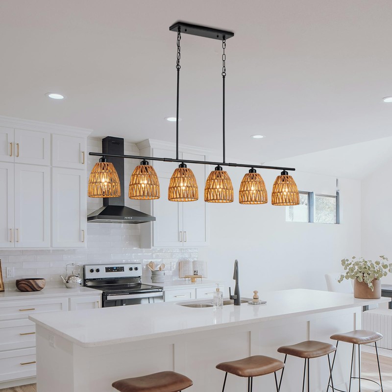 - Wide Applications: This kitchen island light fixture is suitable for dining room, kitchen island, or home bar; Line design, rattan lampshade, it is not just a light, it is a work of art