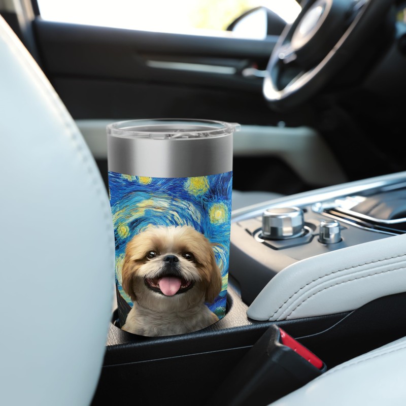 Shih Tzu Tumbler Starry Night Dog Water Bottle Travel Stainless Steel Insulated Tumbler