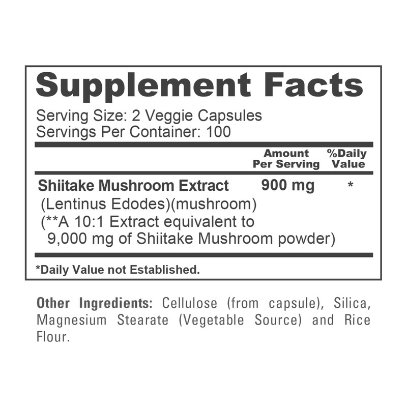 - Shiitake Mushroom 9,000mg equivalent per serving.Extract 10:1.