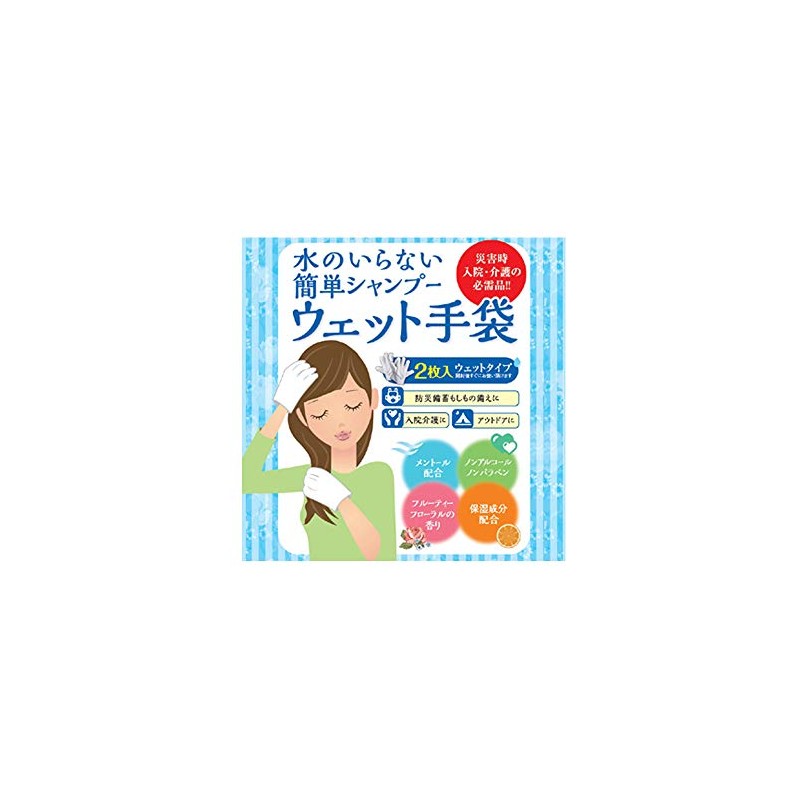 Shikoku Paper Sales Co., Ltd. Waterless Foamless Shampoo Wet Gloves (Pack of 2) Fruity Floral White