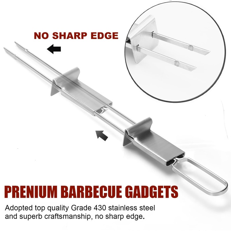 • 【Prevent Food Flipping】The double fork design allows food to be sandwiched between two fork, effectively preventing food from rotating and flipping during the barbecue process, ensuring even heating of the food, reducing scorching and burning during the barbecue process.