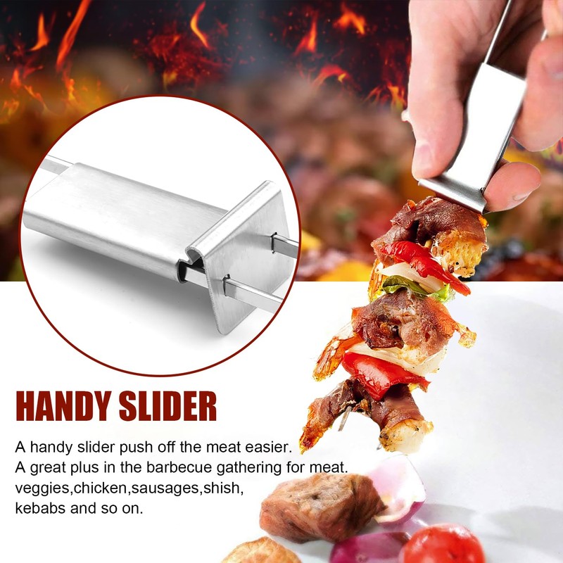 • 【Easy to Push】The sliding push bar can easily push food out of the skewers without the need for direct contact with hot kabob skewers, while avoiding the situation where food is difficult to remove due to adhesion.