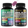Shilajit and Sea Moss Combo - Sea Moss and Shilajit Bundle with Ashwagandha, Black Seed, Turmeric, Bladderwrack, Burdock, Black Pepper with Vitamins and Antioxidants - 30 Veggie Capsules