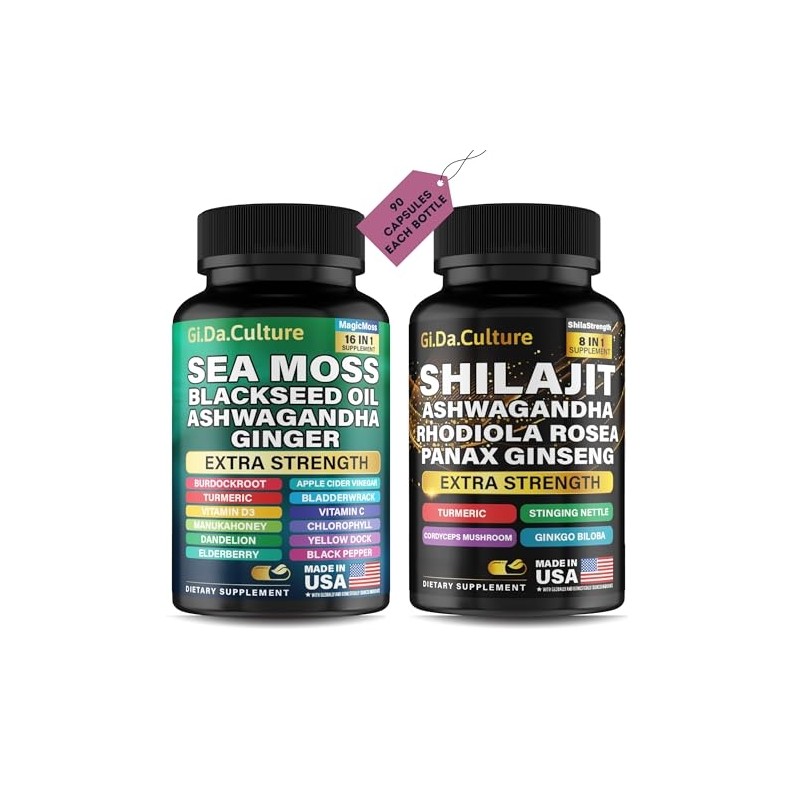 - Shilajit and Sea Moss Combo - Powerful 2-in-1 Wellness Combo Rediscover your energy and inner balance with the legendary synergy of Pure Himalayan Shilajit and Wildcrafted Sea Moss. Designed for those who choose natural performance over artificial shortcuts.