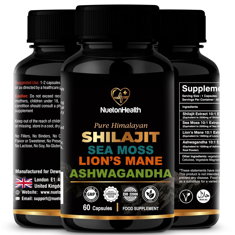 - NUETONHEALTH: YOUR PREFERRED UK WELLNESS BRAND – Experience the power of nature's finest botanics with NuetonHealth's Shilajit Fusion Capsules, combining Himalayan Shilajit, Sea Moss, Lion's Mane, and Ashwagandha for a comprehensive wellness solution. This powerful blend supports energy, cognitive function, stress resilience, and overall vitality. As a London-based brand, we champion informed wellness choices. Trust us to provide you with the highest standards in wellness.