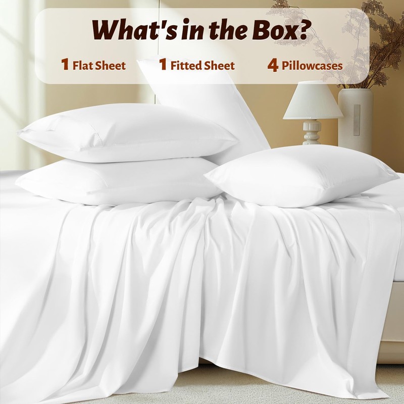 - SNUG FIT:Looking for a fitted sheet in the 6-piece set that actually stays in its place and doesn't come off? Our fitted sheet comes with an all-around elastic to fit your mattress perfectly. The head/foot side indicator tells you how to make the bed easily. WHAT'S INCLUDE: Each King Size Sheet Set comes with 1× Fitted Sheet 78"×80"×16" + 1× Flat Sheet 105"×102"+4× Pillowcases 20"×40"