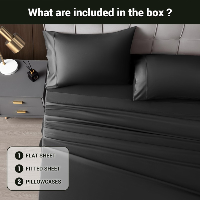 - AFFORDABLE LUXURY: With our Queen size 4 pc sheet sets, we include 1 flat sheet 92" x 102", 1 fitted sheet 60"x80"x16",2 pillow cases 20" x 30". This is the pinnacle of modern luxury bedding finally available at a price that won’t bust your budget.Deep pockets that fit mattresses up to 16" deep .These sheets grip and fit better than any other sheet set! It will never slide no matter how you twist and turn in your bed.Giving you the perfect restful night’s sleep