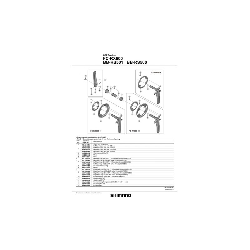 Recommended Bottom Bracket: BB-RS500 (Outboard threaded); BB-RS500-PB (Pressfit)