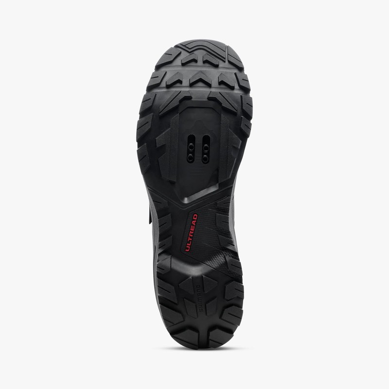 • Superior Grip: Shimano’s proprietary ULTREAD EX rubber outsole and unique tread pattern is optimized for reliable grip on and off the bike