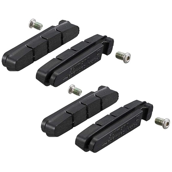 Genuine Shimano replacement parts and are High performance road-specific pad inserts designed to fit all Shimano Road Systems. R55C+1: Shoe thickness is 1mm thicker than R55C3. R55C 1 mm soft compound performs well in dry conditions and tends to be low noise. Brake cartridge inserts are compatible with; BR-7900, BR-7800, BR-7700, BR-6700, BR-6600, BR-6500, BR-5700, BR-5600, BR-5501, BR-5500, BR-650, BR-R600, BR-R561, BR-CX70. 55 mm pad length. Includes fixing bolts. Supplied in 4s.