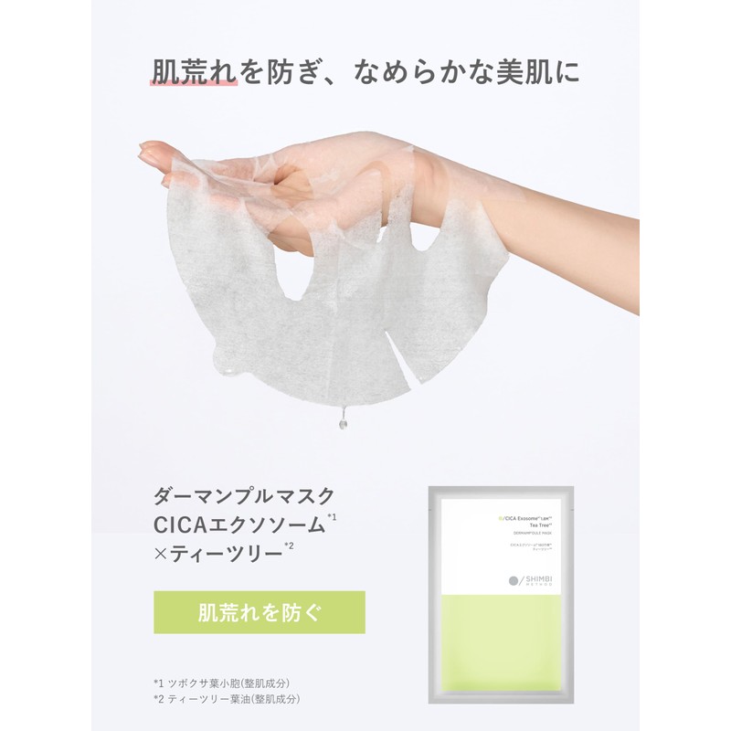- Tea Tree: This sheet mask is based on the apples of the CICA exosome (*1) x rice bran (*2). Power up (*3) CICA ingredients penetrate up to every corner of the skin (*4). By using rice bran (*2) instead of water, it retains moisture within the stratum layer, preventing skin rashes and moisturizes skin from drying. Tea tree blend (*5) prevents skin rashes and keeps skin moisturized. *1 Tsuvaksa foliage cells (skin conditioner component) *2 Komenuka water (moisturizing component) *3 Compared to our company's previous products *4 up to the stratum layer *5 tea tree leaf oil (skin supportive ingredients) *Package design may change without prior notice