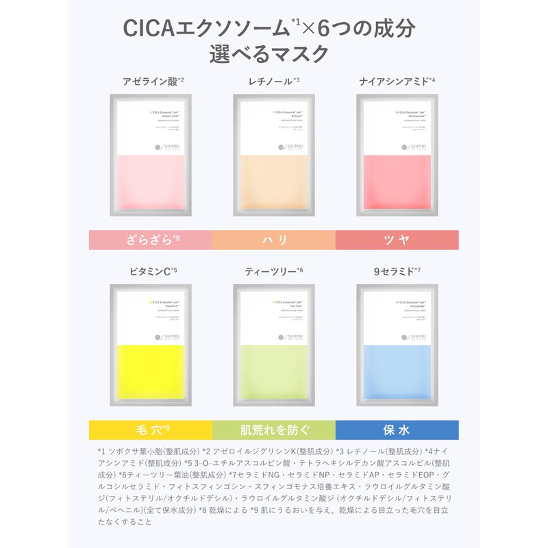SHIMBI Dermanple Mask, Set of 6, CICA Exosome, 9 Ceramide, Niacinamide, Vitamin C, Azelaic Acid, Retinol, Tea Tree, Simbi Method