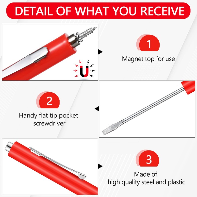 • Rich in Number: you can get 20 pieces of magnetic pocket screwdrivers in each package, rich in number for both home and outdoor use; You can also share some with your family, bringing their daily life more convenience