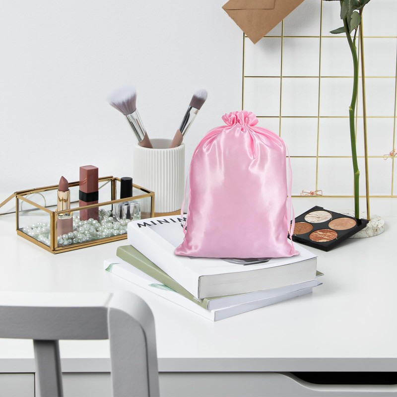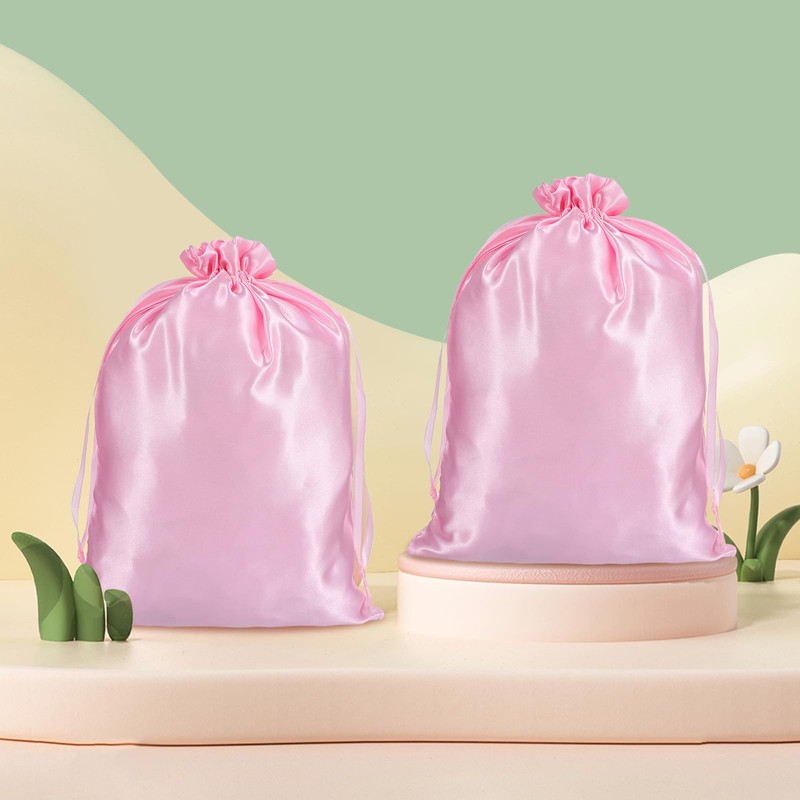 Shimmeroo 4Pcs Wig Bags with Satin Drawstring,Pink Wig Bags Storage for Wigs Extension Bundle