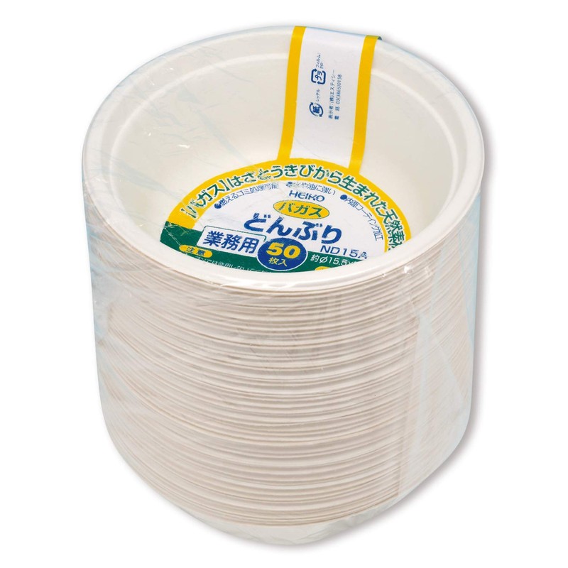 Shimojima Haiko Bagasse Commercial Bowl, C500, ND15A, 50 Sheets White