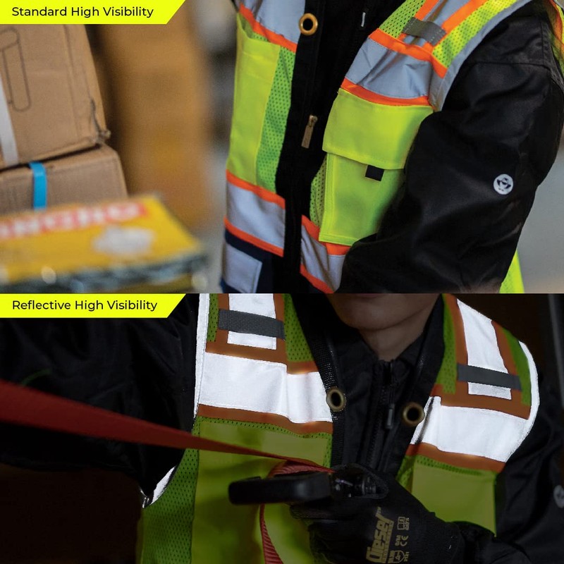 - While other vests are not reflective everywhere, our vest features contrasting silver trim and bright high-visibility fabric for maximum 360° visibility during the day and night