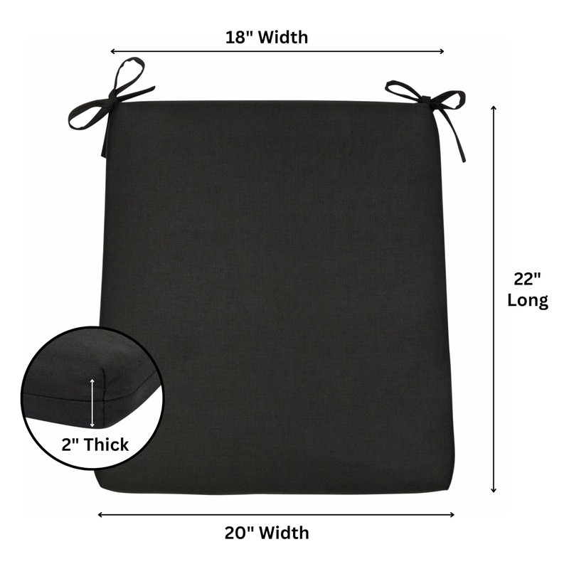 Shine Company Weather-Resistant Outdoor Rocking Chair Seat Cushion, 22"x20", Performance Fabric with Foam Core, Removable Cover with Ties, Black