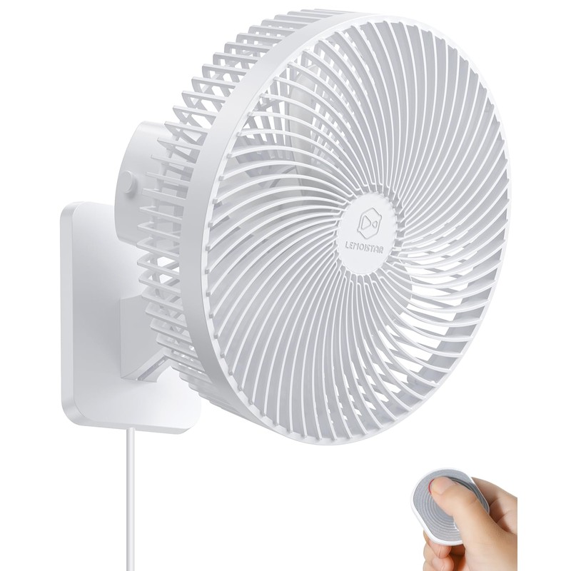 - CONVENIENT CONTROL:This wall mount oscillating fan with remote control, battery is included. Included a full-function remote control allows you to conveniently change speed settings, set timers, choose fan modes, and power the fan on and off from a distance; In addition, the remote control can also be magnetically attached to the center of the fan head to prevent the remote control from being lost