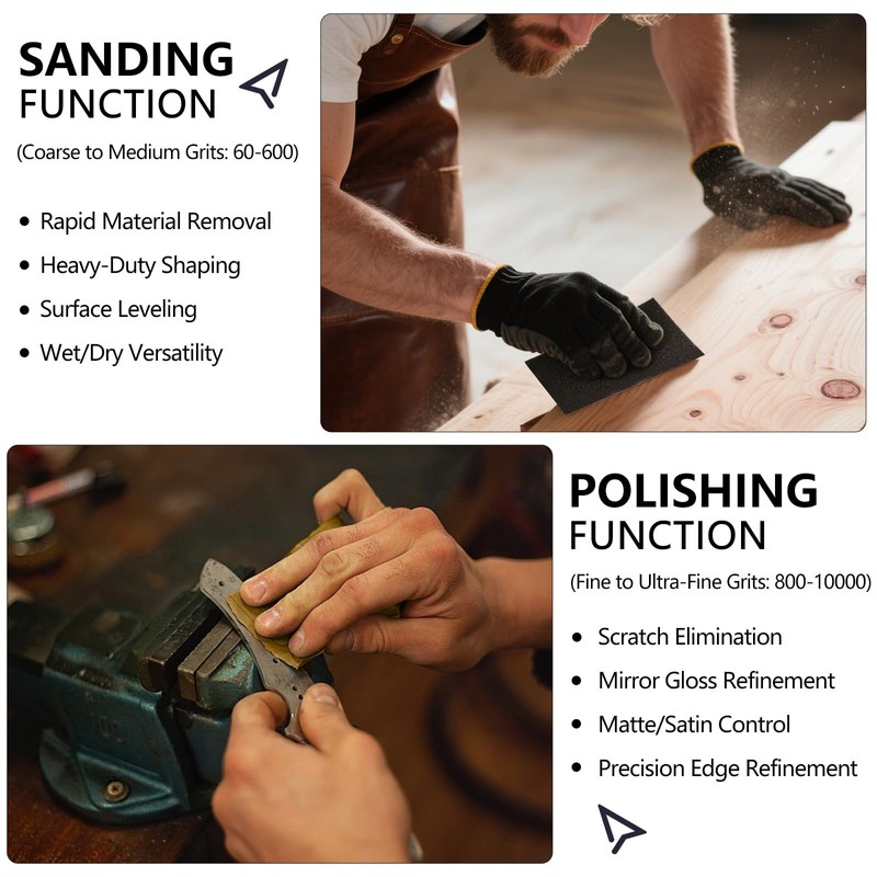 - Premium Material: Crafted from high-quality silicon carbide, it is electrostatically coated to ensure an uniform distribution of grit. This results in long-lasting performance and high resistance to damage