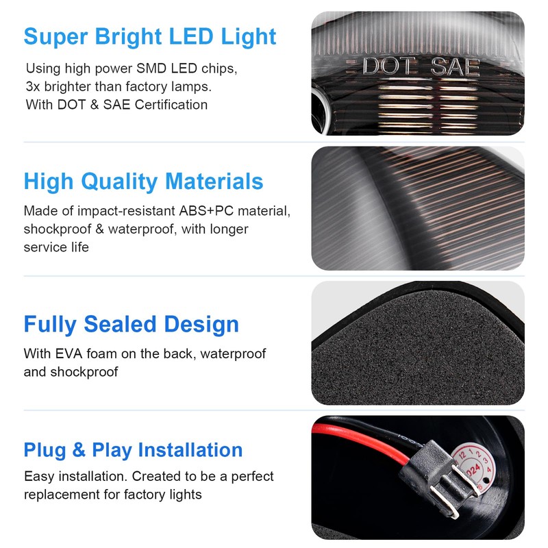 - High Quality Materials - High Gloss PC lens and ABS housing are highly resistant to shock, ultra-durable, ensure the long lifespan.
