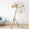 - This floor lamp features a classic tripod design, with a wooden main pole that showcases the rustic charm of nature. Each piece retains the natural wood grain, making it a one-of-a-kind work of art that reflects individuality and style.