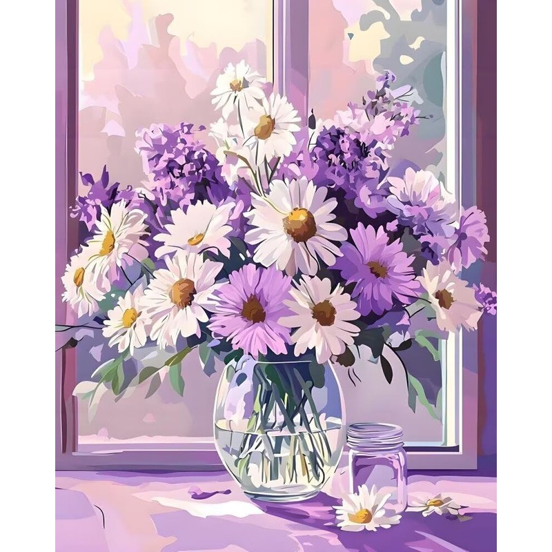 ShineSnow Daisy Purple White Flowers in Vase Art Acrylic Paint Adult Paint by...