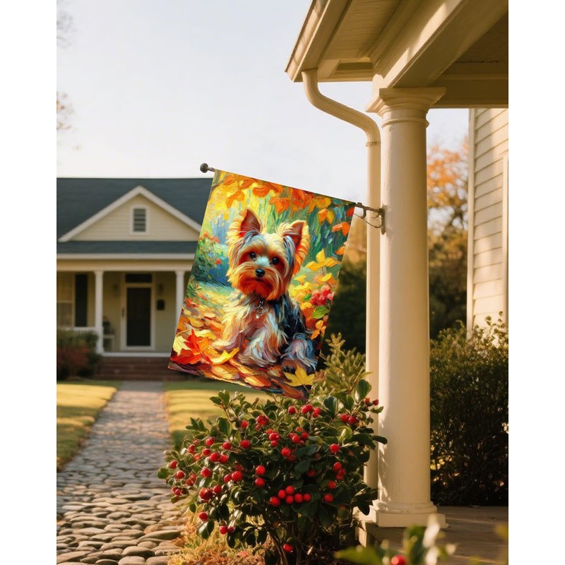 ShineSnow Oil Painting Cute Yorkshire Terrier Dog Autumn Maple Leaves House Flag 28" x 40" Double Sided Polyester Welcome Large Yard Garden Flag Banners for Patio Lawn Home Outdoor Decor