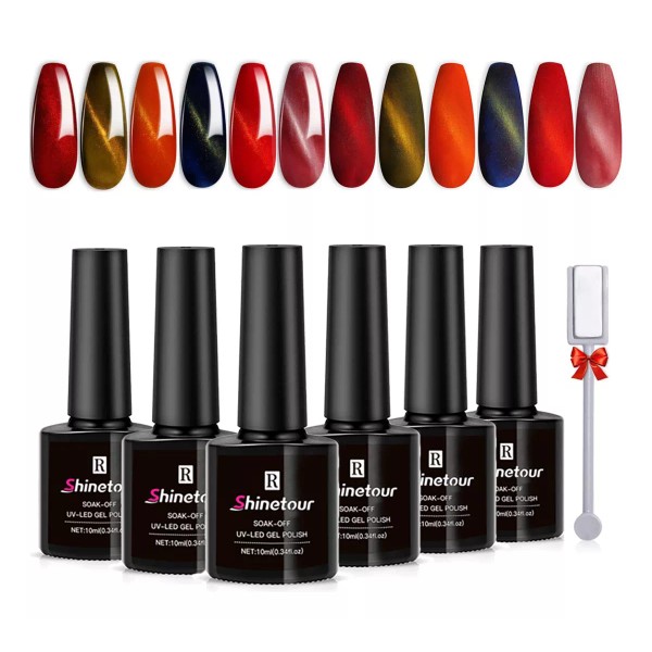 Shinetour Esmaltes Uñas Gel Uñas Efecto Ojo Gato 3d+doble Iman,6 Uds