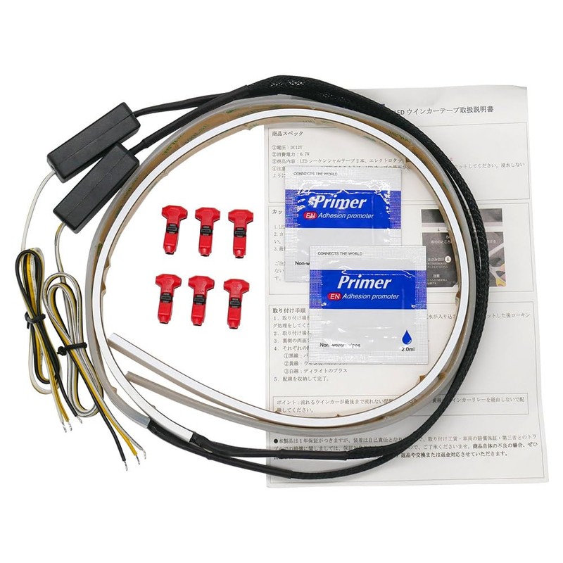 - (Product Details) LED tape with sequential function (left and right) set of 2 (compatible models) for 12 V vehicles; [Size] LED tape part: Approx. 23.6 inches (600 mm) x Width: Approx. 0.6 inches (15 mm) x Thickness: Approx. 0.1 inches (47 mm) x Approx. 0.9 inches (25 mm) x Approx. 0.6 inches (15 inches (15 inches (15 inches (15 mm)