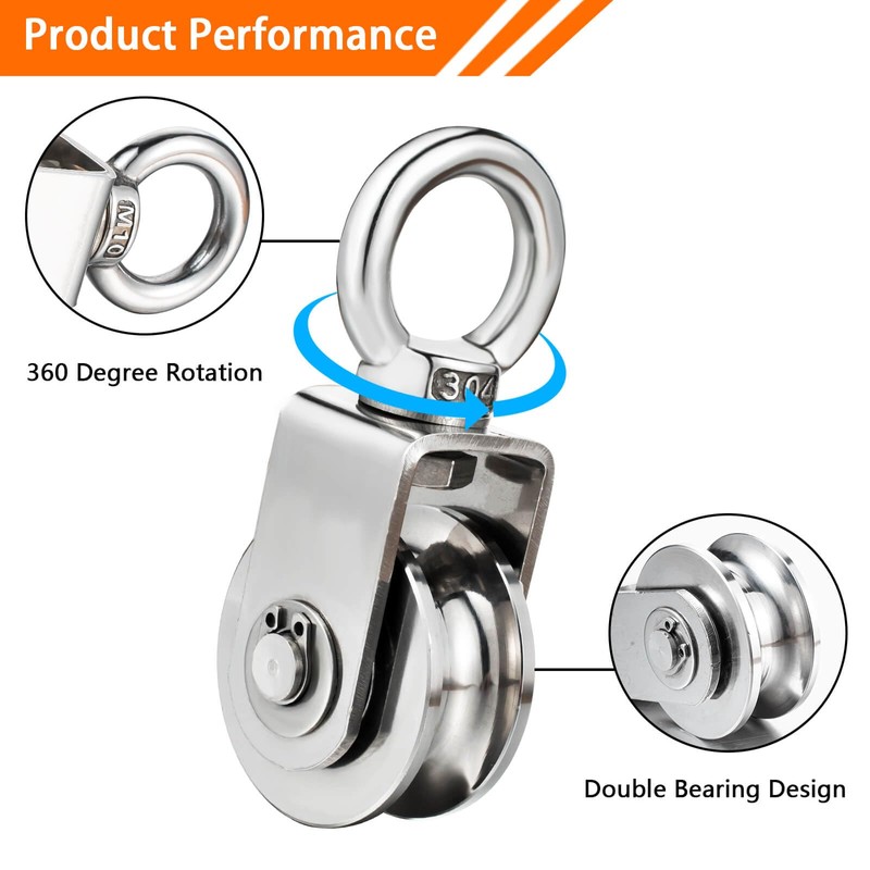 - POLISHED: Every corner of our pulley is polished to remove burrs for a smooth and shiny appearance. The silver coloured pulley not only looks good, but also protects your hands and the rope.