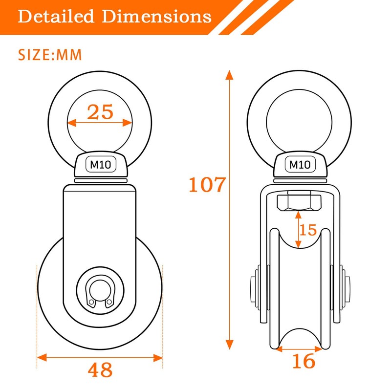 - 2 BALL BEARINGS: The pulley is equipped with two ball bearings, which can reduce the friction, make the pulley easier to rotate, and prolong the service life of the pulley and wire rope.