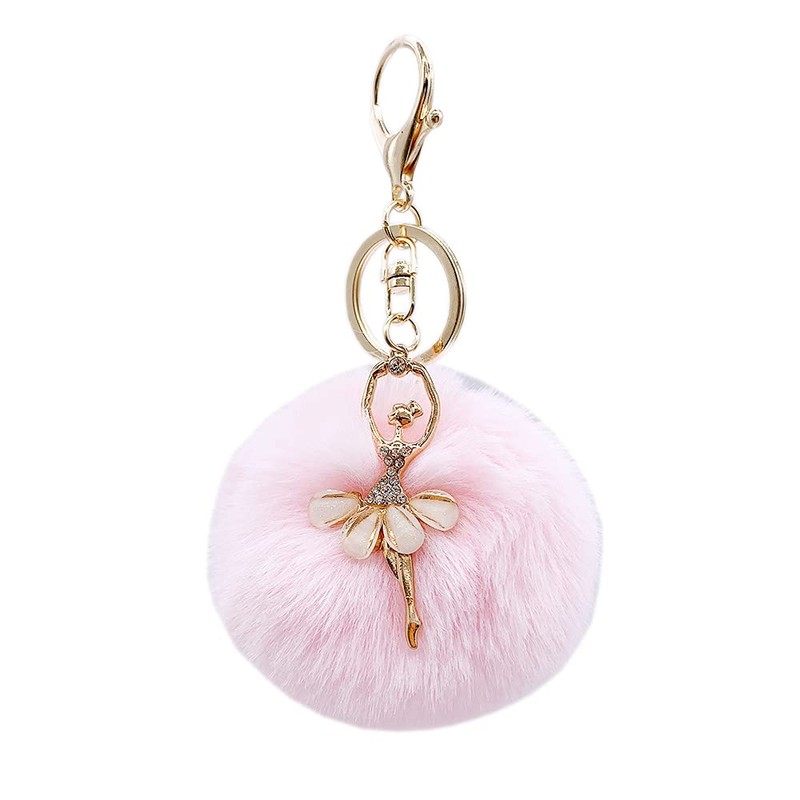 Shining crown Shiny Crown Soft Plush Keychain Fluffy Keychain 8cm Ballet Girl Creative Cute Little Angel Car Bag Pendant, Pink (pink 1)