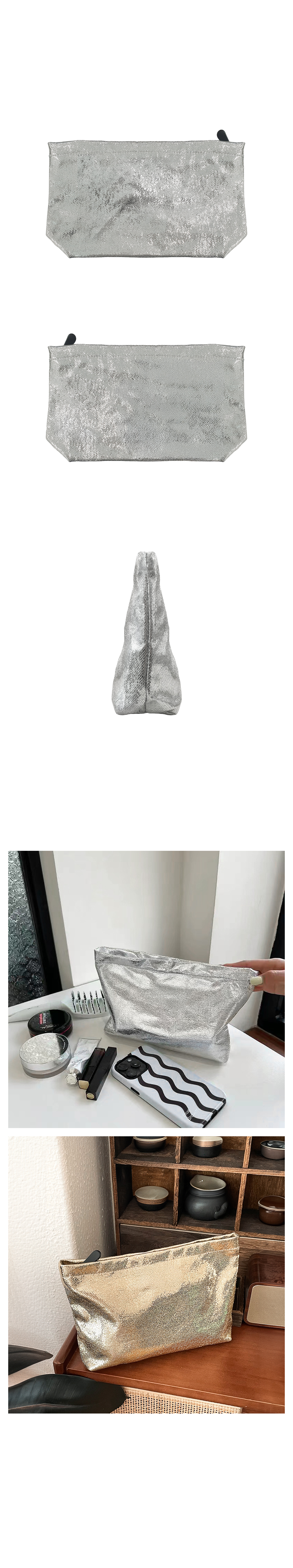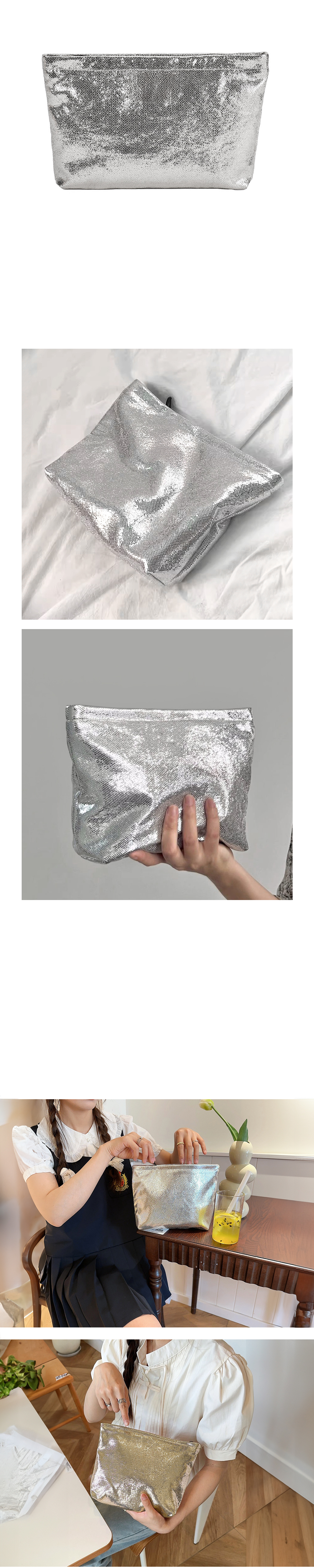Shining Glitter Big Inner Pouch for Sparkle Makeup Silver Pouch 2ea