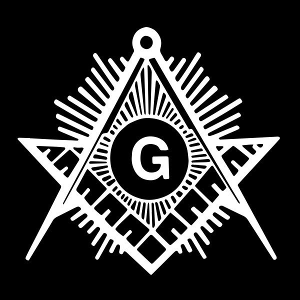 Shining Square & Compass Masonic Vinyl Decal - White 6 Inch