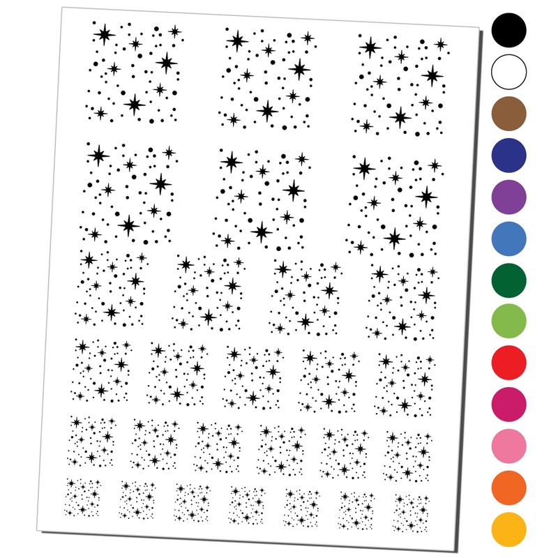 Shining Stars Outer Space Temporary Tattoo Water Resistant Fake Body Art Set Collection - Black (One Sheet)