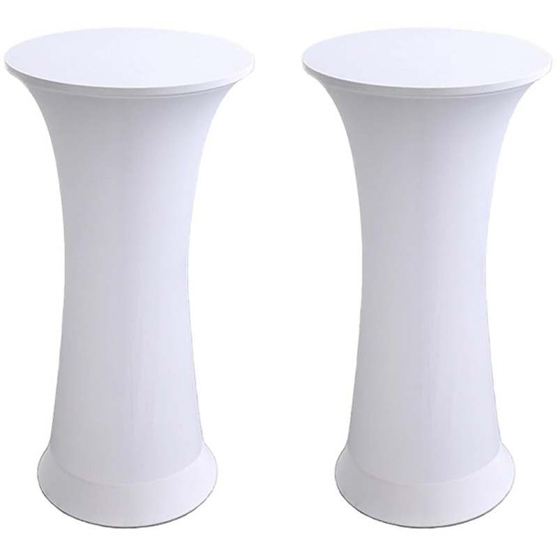 Shiningirl 2 Pack of Round Spandex Stretch Cocktail Elastic Fitted Tablecloth 24x43 Inch Round Highboy Table Covers for Wedding Bar Pub Pool Banquet Party Anniversary