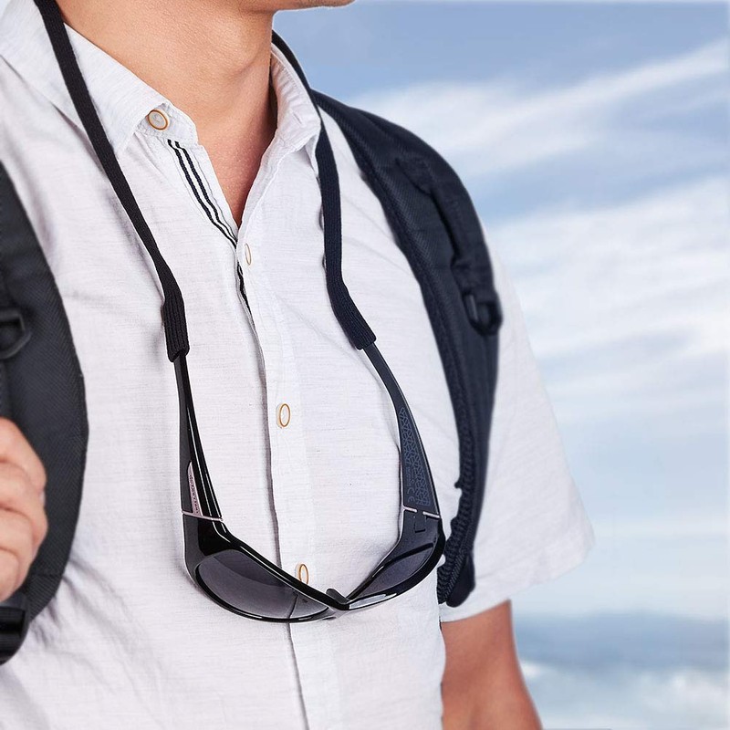 - Secure & Perfect Fit - Each sunglasses cord is 11.8 inches long, with a black anti-slip spring button slider that can be adjusted as tightly or loosely as you want. Athletic elastic rope allow for a perfect fit every time. The headband keeps them secure on your head with no risk of falling off. Hang the lanyards-style sunglasses retainer around your neck when not in use and you’ll never lose your sunglasses again