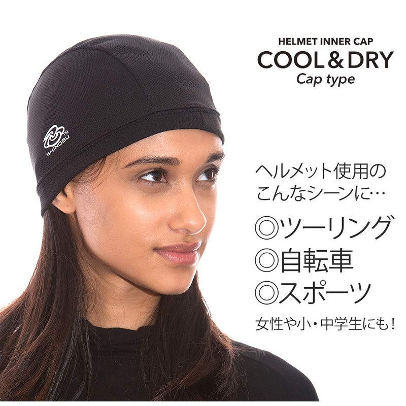 Shinobu Riders SR-047 Cool Max / 2-Piece Set / Small Size Just Fit M / Helmet Inner Cap, Beanie, Hat (Black & Black), black & black