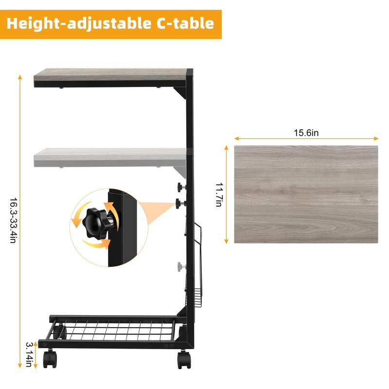 - Sturdy And Durable - Sturdy "C" shape construction made of sturdy metal tubing and thickened MDF wood panels gives it high load capacity and stability; C table adjustable height with 4 wheels (2 lockable) to move the table top as you wish, and the frame has an open cantilever design that can hold up to 60 lbs