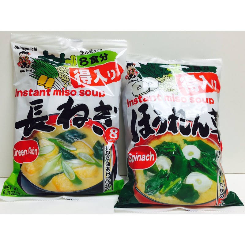 Shinsyu-ichi Instant Miso Soup Assorted 2 Flavors – Spinach (5.76 oz) and Green Onion (6.21 oz)