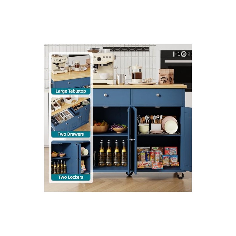 - Universal Rolling Wheels: Smooth-rolling wheels allow easy relocation to any room, while locking mechanisms secure the island in place. Keep essentials handy wherever you work, whether in the kitchen, dining area, or entertaining space.