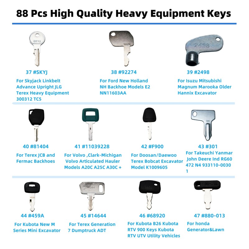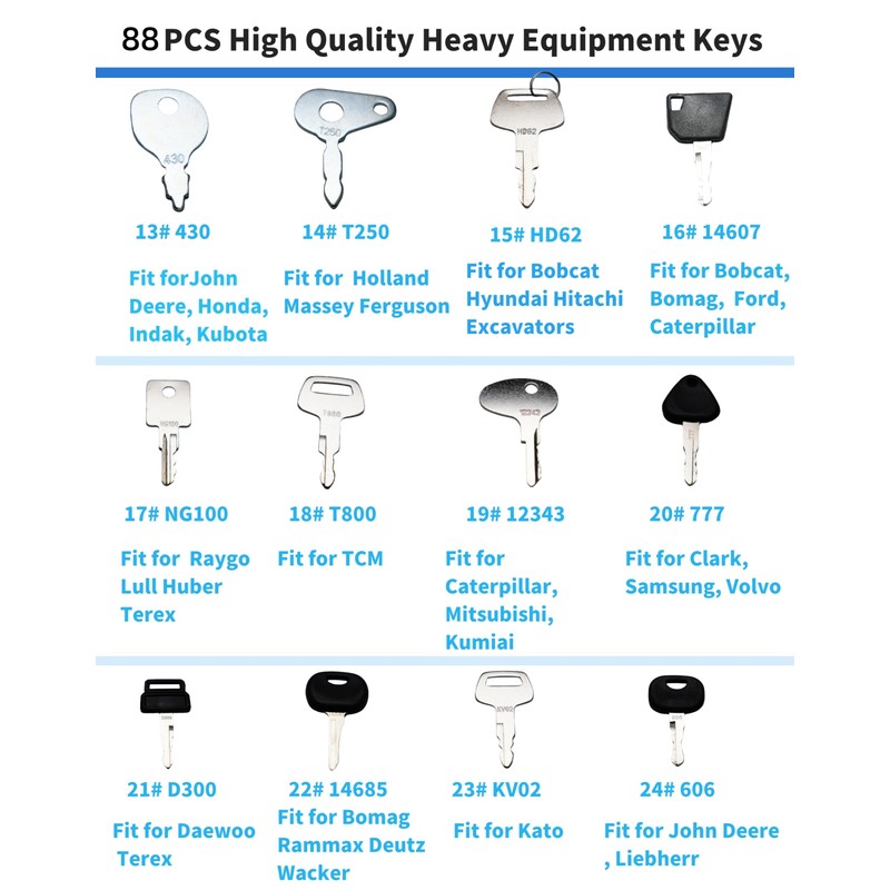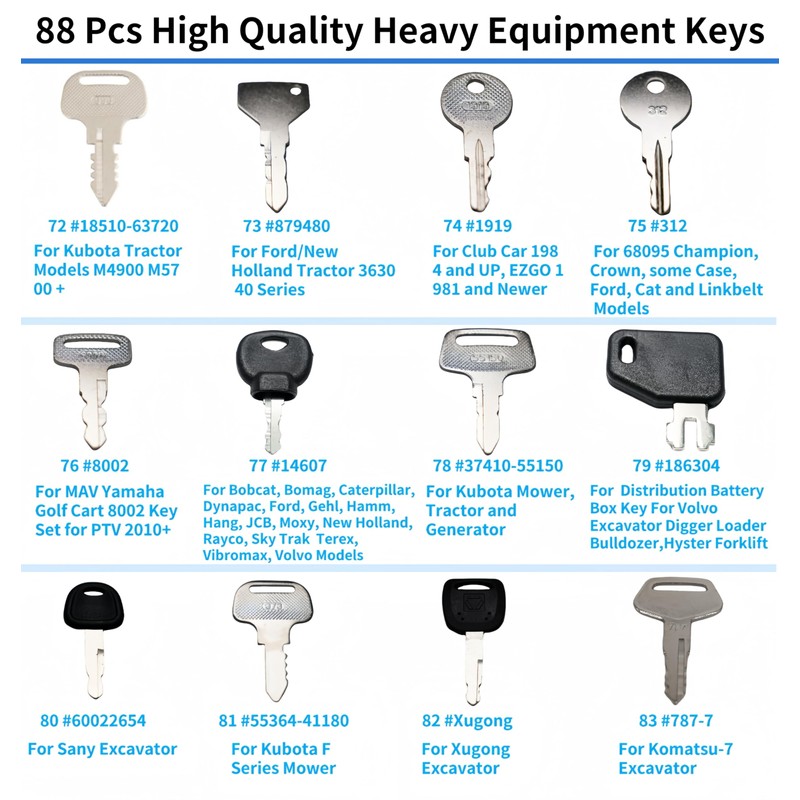 - 2.Aftermarket heavy construction equipment keys are suitable for including excavators, loaders, backhoes, tractors, dump trucks, bulldozers, etc. and can perfectly meet your needs!