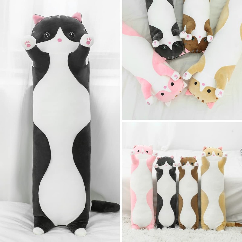 - Long Cat Plush Pillow:The cute cat plush use stretchy fabric that retains its shape even after pulling. Our cat body pillow use high quality soft PP cotton padding,very full, soft and fluffy, giving you super comfortable enjoyment. You won't be able to resist hugging these cat pillows!